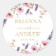 Personalisierte Hochzeitsaufkleber mit einem schönen Blumendesign, rosa & lila, kann mit Ihren Namen und Datum personalisiert werden.