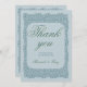 Maßgeschneiderte blaue Spitze danke Ihnen Karte. Im Vintagen Stil mit geometrischen Formen, die an die blaue Spitze erinnern, und blauen Buchstaben mit einem hellen Schatten. Elegante und raffinierte Dankeschön Karte.