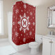 Kundenspezifischer Monogrammwinterzeit Weihnachtsduschvorhang. Personalisierter roter Duschvorhang mit weißen Schneeflocken. Große Schneeflocke in der Mitte, in der Sie Ihre Initiale addieren können. Zusätzlicher Duschvorhang des einzigartigen Weihnachtsbadezimmerdekors - personalisiert mit Ihrem Monogramm.