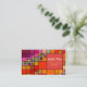 Diese Karte kennzeichnet ein Retro rotes, orange und multi Farbmosaikmuster, das für ein Fliesen- oder Bodenbelaggeschäft groß ist. Völlig kundengerechtes Quadrat auf der Front der Karte und ein Schluss für alle die Ihre Kontaktinformationen. Fertigen Sie es für Ihren Bedarf besonders an!