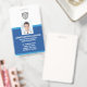 Dauerhaftes, hochwertiges, zweiseitiges Foto Identification Abzeichen für Unternehmen/Krankenhäuser. Auf der Vorderseite, einfach hinzufügen Sie Ihr Firmenlogo (oder löschen), Mitarbeiter Foto, Name, Titel und ID Informationen. Fügen Sie auf der Rückseite zusätzliche Zeilen benutzerdefinierten Textes hinzu, d. h. Geschäftsadresse, E-Mail, Telefonnummer, Gebäude-Position usw. Fügen Sie auch einen Bar Code, QR-Code oder Firmenlogo hinzu - oder löschen Sie. Das aktuelle Abzeichen bietet ein blaues Farbschema, das leicht an Ihre Firmenfarben angepasst werden kann.