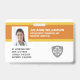 Dauerhaftes, hochwertiges, zweiseitiges Foto Identification Abzeichen für Unternehmen/Krankenhäuser. Auf der Vorderseite, einfach hinzufügen Sie Ihr Firmenlogo (oder löschen), Mitarbeiter Foto, Name, Titel und ID Informationen. Fügen Sie auf der Rückseite zusätzliche Zeilen benutzerdefinierten Textes hinzu, d. h. Geschäftsadresse, E-Mail, Telefonnummer, Gebäude-Position usw. Fügen Sie auch einen Bar Code, QR-Code oder Firmenlogo hinzu - oder löschen Sie. Das aktuelle Abzeichen bietet ein Orange-Gold Farbschema, das leicht an Ihre Firmenfarben angepasst werden kann.