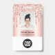 Custom Employee Makeup Artists Haarsalon Glitzer Tropfen Rose Gold Name Abzeichen Einfach personalisieren dieses Custom Employee Name Abzeichen mit Foto, Scan Bar Code und Business Logo. Ein Glam und mädchenhaftes Business-Design in Imitaten Metallfolie rot und weiß, vollständig anpassbar in Vorder- und Rücken-Größen, Sans-Serif Basic und moderne Schriftart und ein berufliches und klares Aussehen. Erhältlich mit Lanyard, Metallklammer oder mit Retraktikett. Keine Mindestbestellung. Foto, Bar, Logo, Name des Mitarbeiters