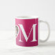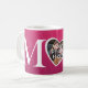 Fügen Sie Ihr Foto dieser Gewohnheits-Mutter-TagesFoto-Tasse hinzu! Vibrierender rosa Hintergrund mit hellem Herzen formt in den Hintergrund. Große typografische "MAMA" in allen Kappen, in denen der Mittelbuchstabe eine Herzform ist.