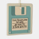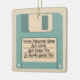 Erinnern Sie sich an Disketten? Diese Weihnachtsbaumverzierung ist eine Explosion von der Vergangenheit mit ihr ist Illustration eines hellblauen Computerdisketten-Disc. Benutzen Sie die Schablonenfelder, um Ihre eigene Mitteilung dem Etikettbereich der Scheibe leicht hinzuzufügen. Diese doppelseitige Verzierung kennzeichnet den gleichen Entwurf auf beiden Seiten, obwohl Sie eine Seite durch Ihr eigenes Foto oder eine einfache Mitteilung ersetzen können. Dieses koordiniert mit anderen Einzelteilen in der alten Technologiesammlung von den Sternchen-Entwürfen. Macht ein Spaßgeschenk oder -kleines Geschenk für Geeks und Computer-Nerds alles Alters.