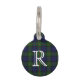 Mit Monogramm Hundeplakette des Spaßes mit der Front erfolgt im karierten Muster blauer, grüner und roter Clan Gunn, mit einem großen Buchstabemonogramm des Weiß eins. Die Rückseite des Umbaus ist in dunkelblauem, mit weißem Text erfolgt. Personifizieren Sie das Monogramm und den Text auf zurück zu Anzug Ihr Bedarf.