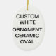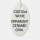 Gewohnheit druckte personalisierte OVALE WEISSE PORZELLAN-WEIHNACHTSBAUM-VERZIERUNGS-DEKORATION Raum-Schablone - 3,32" hoch x 2,37" weit. Entwurf, schaffen, machen Ihre Selbst. Ihr Foto, Bild, Text, Logo, Grafiken im farbenreichen Druck auf beiden Seiten von der Verzierung. UV-beständig, wasserdicht.
