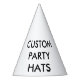 Gewohnheit druckte personalisierte KEGEL-PARTY-HUT Raum-Schablone - 6" das Hoch (zusammengebaut). Entwurf, schaffen, machen Ihre Selbst. Vibrierender farbenreicher Rand-zurand Druck Ihres Fotos, Muster, Bild, Text. Partyhüte haben eine elastische Schnur, die befestigt wird, um auf Ihrem Kopf zu sichern. Minimaler Auftrag von 12. Gemacht in den USA.