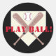 Zeigen Sie Ihre sportliche Art mit diesen themenorientierten Aufklebern des Baseballs. Dieses Ausrüstungsbeschreibungen kreuzten Baseballschläger und einen Ball über einer weißen Zuhauseplatte. Der kundengerechte Nichterfüllungstext sagt Spiel-Ball im roten Druck auf einem schwarzen Hintergrund. Dieser Entwurf ist völlig kundengerecht! Sie können die Text- und Schriftart- oder Hintergrundfarben redigieren, wenn Sie wünschen. Schlagen Sie einfach den Personifizierungsknopf, um Ihren eigenen Text einzutragen, oder den besonders anfertigen Knopf zu schlagen, um alle mögliche Schriftart- oder Farbänderungen vorzunehmen und es Ihr zu machen! Macht eine große Dekoration oder ein Geschenk für sportliche Kinder und Baseball, Softball oder Spieler der kleinen Liga.