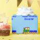 Ein Zug geht die Bahnen über Ihrer personalisierten Mitteilung hinunter (gezeigt: Alles Gute zum Geburtstag Alexander). Ändern Sie die Zahl des Zugs zum Alter des Kindes (gezeigt: 3). Der Hintergrund ist Himmelblau.