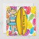 Unsere kundengerechten blonden Mädchensurfer-Geburtstagseinladungen sind einfach, mit Ihrem Namen und Partyinformationen besonders anzufertigen. Bunt und Sommer themed, groß für schwimmende Partys, Pool-Partys, surfende Thema-Partys!