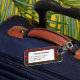 Stilvoller Gepäckumbau getan im traditionellen schottischen Clan MacRae bunten karierten Muster des blauen, grünen, weißen und roten Tartan. Ein grüner umrandeter weißer Textbereich, auf der Front hat den schwarzen Text, der bereit ist, mit Ihren Informationen zu personifizieren. Die perfekte Weise, Ihr Gepäck zu beschmutzen und macht eine große Geschenkidee.