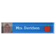 Schreibtischnummernschild des stilvollen Schullehrers getan im Blau, mit Grafiken eines roten Apfels, auf der Rechtsextremismusseite. Fügen Sie Ihr eigenes Foto, auf der linken Seite des Nummernschildes hinzu und personifizieren Sie den weißen Text mit Ihrem Namen. Macht ein großes zurück zu Schulgeschenkidee.