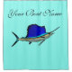 Fertigen Sie diesen Segelfisch-Duschvorhang mit Ihrem Boots-Namen, Text der Wahl oder sogar Löschung besonders an. Lose verschiedene Hintergrundfarben, zum von zu wählen und Schriftartart und -farbe können geändert werden, um den einzigartigen Duschvorhang wirklich zu personifizieren.