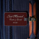 Kundenspezifischer Gepäckumbau gezeigt im Braun/im Aqua mit gerade verheiratetem Text. Fertigen Sie diesen Umbau besonders an und ändern Sie Namen und Datum zu Ihrem. Sie können Farben sogar ändern.