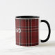 Große schauende schottische Clan-Tasse getan im klassischen dunkelroten, schwarzen und weißen Lougheed karierten Muster. Alte Weltarttext im Weiß liest Lougheed und ist kundengerecht, zu lesen, was Sie wollen.