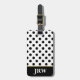 Dieser weiße Gepäckanhänger hat ein schwarzes Tupfenmuster. Personifizieren Sie Ihren Gepäckumbau mit Ihrem Monogramm, das unterhalb zwei Imitatgoldlinien ist. Imitatgoldlinien sind- eine künstlerische Wiedergabe (keine Goldfolie auf Produkt).