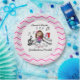 Ein Strichmännchenmädchen-Violinenspieler in einem rosa Kleid auf rosa Zickzack Entwurfspapier-Teller. Kundenantrag