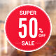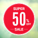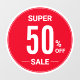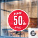52" Grosses, rundes SUPER SALE-Schild mit einer großen Anzahl von Prozentpunkten vom Schriftart-Fensterheber, macht dieses Zeichen lesbar. Setzen Sie das Fenster Ihres Unternehmens ein, um aktuelle Verkäufe anzukündigen.