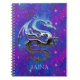 Zeigen Sie Ihre Liebe der Drachen mit diesem personalisierter silberner glücklicher Drache-gewundenen Notizbuch. Dieses Ausrüstungsbeschreibungen ein himmlischer lila, blauer und rosa Galaxiehintergrund mit Sternen und einem verwickelten silbernen Drachen des metallischen Schildes. Es gibt eine Stelle, zum des Notizbuches mit Ihrem Namen besonders anzufertigen. Einfach tragen Sie Ihren Namen oder Text in den Kasten ein und machen Sie es Ihr. Macht ein großes Geschenk!