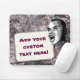 Was ist auf Ihrem Verstand? Fügen Sie Ihre Aussage auf dieser kundenspezifischen Mausunterlage hinzu! Digital geändertes Foto des jungen Mannes schreiend Ihr Text auf einem weißen rechteckigen Aufkleber. Hintergrund ist Foto der rosa-ish Felsenbeschaffenheit.