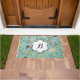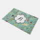 Wunderlicher Blumen-Garten, ein schönes, ein bunt, Spaß, wunderlicher Entwurf der Creme, dunkles Braun, Koralle, Blau und Grün-Blumen und -vögel auf einem hübschen Aquablauhintergrund. Dieser Spaß, bunte, wunderliche Türmatte kennzeichnet eine weiße Blumenformfahne, die Sie mit Ihrer Monogramminitiale leicht personifizieren können!