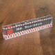 Schreibtischnummernschild des stilvollen Schullehrers getan in einem Tafelgrau, mit einer roten und weißen karierten Grenze, auf der Spitze und der Unterseite. Grafiken eines roten Apfels, verziert die links Seite der Plakette und kundenspezifischer weißer Text ist bereit zu personifizieren. Macht eine große Geschenkidee.