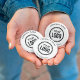Kundenspezifisches Firmenlogo und Slogan mit Werbe Button