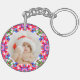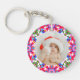 Kundenspezifisches Foto Frohe Weihnachten Moderne farbenfrohe Runde Key Ring. Eine festliche, fröhliche und helle Weihnachtsmustertafel für die Organisation Ihrer Schlüssel. Fügen Sie Ihre eigenen zwei Fotos, um familiäre Erinnerungen zu feiern. Für budgetfreundliche, maximalistische Weihnachtsgeschenke Wohngestaltung. In den traditionellen, warmen Weihnachtsfarben Rot, Rosa und Orange, mit Wintergrün und Blau. Macht ihr ein großartiges, preisfreundliches Geschenk.