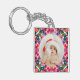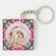 Kundenspezifisches Foto Frohe Weihnachten Moderne farbenfrohe Schlüsselanhänger. Ein festlicher, fröhlicher und heller Weihnachtsmusterring für die Organisation Ihrer Zuhause- und Büroschlüssel. Personalisieren Sie den Text nach Ihren eigenen Wünschen. Und fügen Sie Ihre eigenen zwei Fotos, um familiäre Erinnerungen zu feiern. Für budgetfreundliche maximalistische Weihnachtsgeschenke Wohngestaltung. In den traditionellen, warmen Weihnachtsfarben Rot, Rosa und Orange, mit Wintergrün und Blau. Macht ihr ein großartiges, preisfreundliches Geschenk.