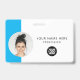 Dieses maßgeschneiderte Abzeichen für Minimalistische Firmenmitarbeiter mit Foto, Qr-Code scannen oder Bar-Code scannen und Firmenlogo wird einfach personalisiert. Ein einfaches Business-Design mit rundem Foto, hellblau und weiß, vollständig anpassbar in Vorder- und Rücken-Größen, serifenlose, einfache und moderne Schriftart und ein berufliches und klares Aussehen. Erhältlich mit Lanyard, Metallklammer oder mit Retraktikett. Keine Mindestbestellung.