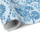 Eine Rolle des schönen Geschenk-Verpackungs-Papiers, mit Imitat schnüren sich Blumenmuster im Indigo-Blau auf einem weißen Hintergrund, den Sie ändern können, wenn Sie wünschen. Teil der vornehmen u. Painterly "Indigo-Spitze" Sammlung, können Sie dieses Packpapier leicht besonders anfertigen, indem Sie die Indigo-Spitzemusterfliese drehen oder die Größe neu bestimmen.