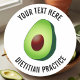 Kundenspezifische grüne Avocadodiätetikerernährungswissenschaftlerlogoaufkleber oder -Umschlag Aufkleber. Personalisierte Zusätze für private Praxis, Geschäft, Firma, Restaurant, Party etc. addieren Ihren eigenen Namen, Handelsname, lustiges Zitat oder Sprichwort, Slogan etc. Auch nett für veganes, vegetarisch, scherzt Fitnesslehrer, Diätplaner, Nahrungsmittelliebhaber, persönlicher Trainer, Kochskoch, Schule etc.