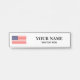 Kundenspezifisches hängendes Namensschild des Schreibtisches mit amerikanischer Flagge. Patriotische Namensschildschablone mit kundenspezifischem Jobtitel oder beruflichem Firmennamen. Machen Sie Ihre Selbst mit einem individuellen Namen und formalen einer Jobfunktion wie Führungskraftproduzenten, Manager, CEO, Doktor, Hausmeister. Elegante Typografieschablone. Vervollkommnen Sie für Geschäftschef, Büroangestellten, Mitarbeiter, Kollegen, Trainer, Schullehrer, Dekan, Direktion, Büroangestellte, wirklichen Anwesen-Agenten, Direktor, Zahnarzt, Produzenten, Empfangsdame, Rechtsanwalt, den Rechtsanwalt etc., der im Silber verfügbar sind, Rosengold und schwarze Farbe. Addieren Sie Ihr eigenes Logo beliebig und halten Sie fest,/Schraube an der Raumtür oder setzen auf Ihre Schreibtischtabelle.