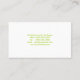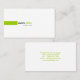 Ein moderner Entwurf mit einem grünen Rechteck zentriert zur links Seite auf einem weißen Hintergrund mit schwarzem Text für den Vornamen und zusammenpassendem Grün für den letzten Namen. Die weiße Hintergrundfarbe kann, beim Besonders anfertigen geändert werden, Klicken "redigieren" dann "Hintergrund" wählen dann Ihre Farbe. Textfarbe und -Schriftart können auch geändert werden. Zusätzliche Information in zusammenpassendem Grün ist auf der Rückseite der Karte.