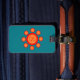 Fügen Sie Beifall Sommerreise mit diesem hellen und bunten Gepäckumbau in aquamarinem hinzu, ein traditionelles indisches "maruthani" Kreissüdmuster in Orange und in Rotem kennzeichnend. Entwerfen Sie inspiriertes durch das einfache und elegante Muster meine Mamma, die verwendet wird, um auf meinen Händen und Füßen zu zeichnen. Besonders geschaffen für den Tag der Mutter. Ändern Sie den großen Buchstaben "S" zu Ihrer Initiale für einen kundenspezifischen mit Monogramm Blick.