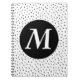 Minimales Gekritzelstellenmuster in der Skizzeart. Es ist einfaches Schwarzes ein weißes Muster, das, als cooles groß schauen würde, aber Spaß, modernes gemustertes Notizbuch, die personalisierte Initiale macht es sogar einzigartig für Sie.
