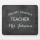 Kundenspezifisches Tafeltafel-Schullehrer mousepad. Personalisiertes Computerzubehör für den beststen Lehrer der Welt, besten Tutor, Erzieher, schönen Vintagen Blickentwurf des Jobzuges etc. mit Kreidebuchstabetypographie und stilvolle Skriptkalligraphie. Geburtstaggeschenkidee für Kindergarten, vor Schule, Grammatikschule, Highschool oder Volksschulelehrer. Bürozubehöre für Zuhause- oder Arbeitsschreibtisch. Auch nett für Haupt-, behilfliche, Co-Arbeitskraft, Kollegen, Personal, Trainer, Freund oder Klassenhelfer. Die unterrichtenden Themageschenke, zum Ihrer Anerkennung zu zeigen und zu sagen danken Ihnen. Machen Sie ein von der Klasse, von der Gruppe Kindern oder von den Studenten. Passend für die männlichen oder weiblichen Lehrer.