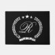 Kundenspezifische Vintage Wreath-Wappenmonogrammschwarz-Willkommensfußmatte. Kundenspezifische Türmatte für Familien, Geschäft, Firma, Geschäft, Speicher, Büromitarbeiter, Jungvermählten, Herr und Frau couple, neue Hausbesitzer etc. addieren Ihren eigenen schicken Monogrammbrief. Noble Geschenkidee für neues Zuhause, Verlegung oder Housewarming. Schicke Skripttypographieschablone mit Emblem. Personalizable Fußmattenzeichen mit extravaganter Grenze und Sternen. Stellen Sie Ihre eigene schöne Eintrittsmatte/-wolldecke für Haustür, Eingang oder Halle her. Auch nett für Luxushochzeitsort. Kundengerechte Wohngestaltung/Dekorationen für Ihr luxuriöses Haus. Trendy Wohngestaltunggeschenkideen. Verfügbar in kleinem und großem großem.