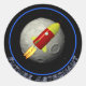 Künftiges Astronautenlogo mit Rakete und Mondhintergrund