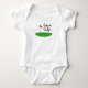 Künftiger Golfer Baby Bodysuit für Neugeborene. Niedliches Outfit für einen kleinen Jungen oder eine junge Frau. Maßgeschneidertes Design mit Golf Ball, roter Flagge und Putting Green Illustration. Sportliches Geschenk für Babydusche Party. Golfgeschenke für Kinder.