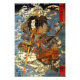 Kuniyoshi Samurai Print. Ukiyo-e Holzblock aus der Edo Periode Japan. Utagawa Kuniyoshi entwarf einige der lebhaftesten und eindrucksvollsten Samurai-Gemälde der Edo-Zeit. Seine Darstellung von Shimamura Danjo Takanori zeigt die Samurai in voller Rüstung, während er seine Naginata schlängelt, während er auf den Meereswellen auf den Rücken zweier blauer Krebse reitet. Der Samurai wurde von mehreren Pfeilen getroffen, aber kämpft heftig mit Wellen und Krabben, die im Hintergrund aufgehen. Ein tolles Geschenk für Fans von Utagawa Kuniyoshi, Samurai Gemälden und japanischer Kunst.