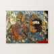 Kuniyoshi Samurai Puzzle. Ukiyo-e Holzblock aus Edo Period Japan. Utagawa Kuniyoshi entwarf einige der lebhaftesten und beeindruckendsten Samurai-Gemälde der Edo-Zeit. Seine Darstellung von Shimamura Danjo Takanori zeigt die Samurai in voller Rüstung mit seiner Naginata, während er die Wellen des Meeres auf dem Rücken von zwei blauen Krabben reitet. Der Samurai wurde von mehreren Pfeilen getroffen, aber kämpft heftig mit Wellen und Krabben im Hintergrund. Ein großartiges Geschenk für Fans von Utagawa Kuniyoshi, Samurai Gemälde und japanische Kunst.