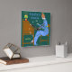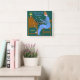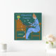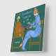Diese personalisierte quadratische Wanduhr hat einen Vintagen Kunst-Dekoschabloneblick. Eine Frau in einem blauen Kleid sitzt an einem Schreibtisch mit dem angehobenen Stift, während eine Lampe nahe bei ihr glänzt. Der Hintergrund ist dunkles aquamarines. Die Frau schaut, wie sie vom 19. oder vom Anfang des 20. Jahrhunderts ist. Der Entwurf hat ein modernes stilisiertes Gefühl.