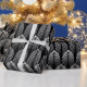 Verpackungspapier in einem Vintagen Kunst-Dekotapetenmuster basiert auf einer stylized Feder - Schatten des silbernen Graus/des Graus auf einem schwarzen Hintergrund