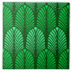 Keramikfliese in einem Vintagen Kunst-Dekotapetenmuster basiert auf einer stylized Feder - Schatten der Minze und des hellen Smaragdgrüns, auf einem dunklen Smaragdgrünhintergrund
