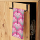 Teetuch in einer Wiedergabe von stylized, Kunst-Dekolilie, Tapetenmuster - eine Steigung des hellen silbernen Graus/des Graus zum dunklen Graphit auf einem tiefen pinkfarbenen rosa Hintergrund, betont mit hellerem Rosa