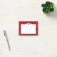 Diese Post-It Posten-it® Anmerkungsauflage kennzeichnet einen dunklen Ziegelsteinrothintergrund und einen weißen Kasten mit einer Dekogrenze der schwarzen Kunst.