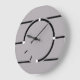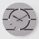 Eine sehr moderne schauende runde Uhr im Grau mit schwarzen Linien in der Kunst-Dekoart.