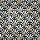 Digital-Wiedergabe eines Klassikers, Kunst-Dekotapete, Fanmuster - Weiß auf dem schwarzen Gewebe, verschönert mit Gold